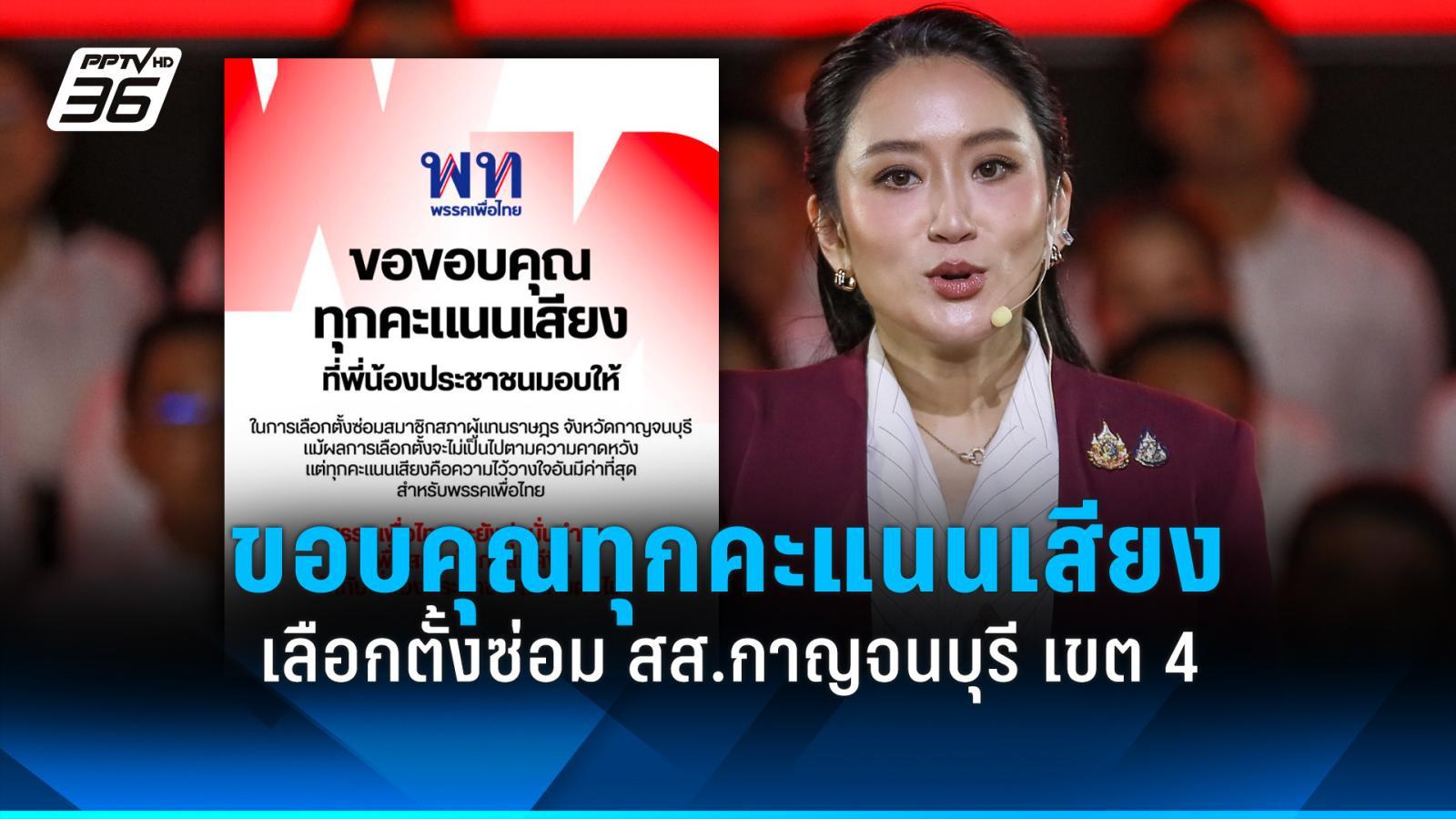 พรรคเพื่อไทยแสดงความขอบคุณสำหรับทุกคะแนนเสียงในการเลือกตั้งซ่อม สส.กาญจนบุรี เขต 4 แม้จะไม่ได้ชนะเลือกตั้ง แต่พรรคยืนยันจะรับฟังเสียงของประชาชนต่อไป และพร้อมปรับปรุงนโยบายในอนาคตเพื่อพัฒนาประเทศ