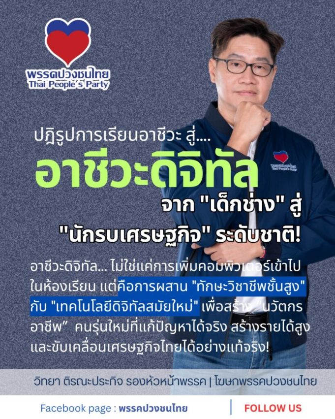 - การสร้างนักรบเศรษฐกิจ: มุ่งผลิตบัณฑิตอาชีวะที่มีทักษะดิจิทัลขั้นสูง พร้อมแข่งขันในตลาดแรงงานสากล