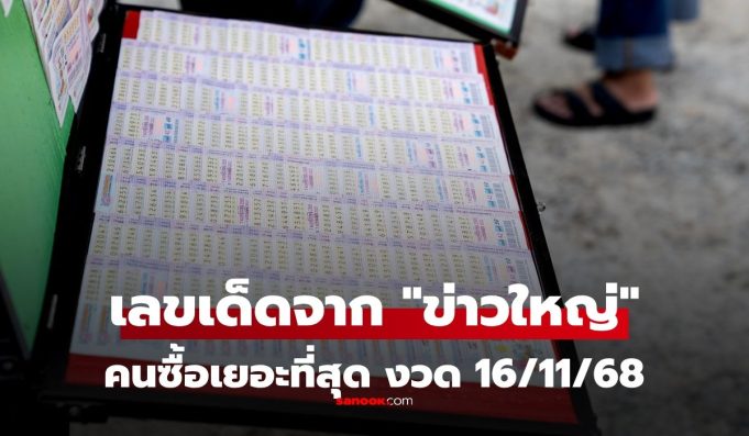 ประเด็นสำคัญจาก: แผงหวยบอกเอง! เลขเด็ดจาก “ข่าวดัง” งวด 16/11/68 ที่คนแห่ซื้อเยอะที่สุดงวดนี้